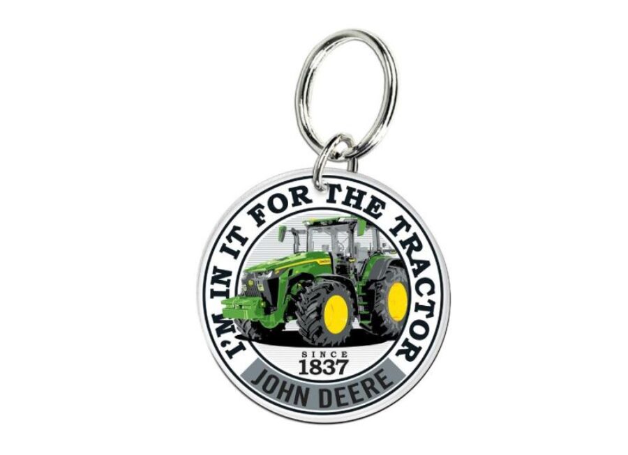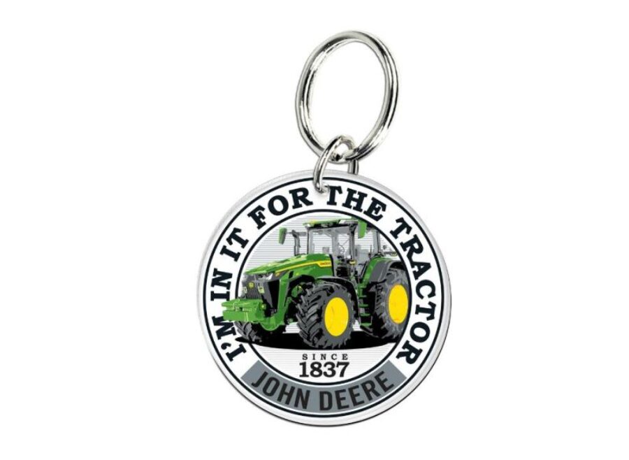 JOHN DEERE TRACTOR KEYRING “I’M IN IT FOR THE TRACTOR” ROUND WITH 8R TRACTOR. MATERIAL: 100% ACRYLIC